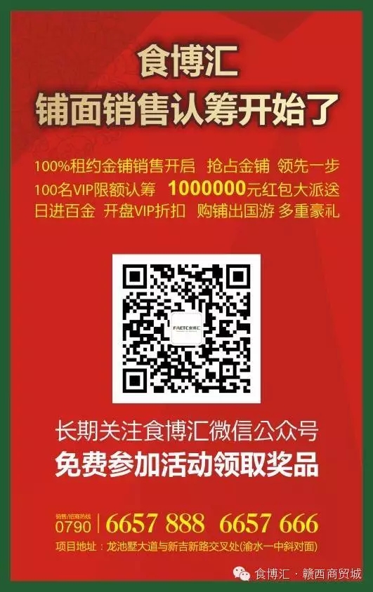 “食博匯,惠天下,聚名優,保民生”是食博匯矢志不渝的終極愿景,食博匯100%帶租約商鋪認籌已正式啟動,熱切歡迎具有超規模實力的品牌代理商,具有投資眼光和經營實力的機構和個人,國內外名優品牌食品副食百貨生產商家前來咨詢投資。