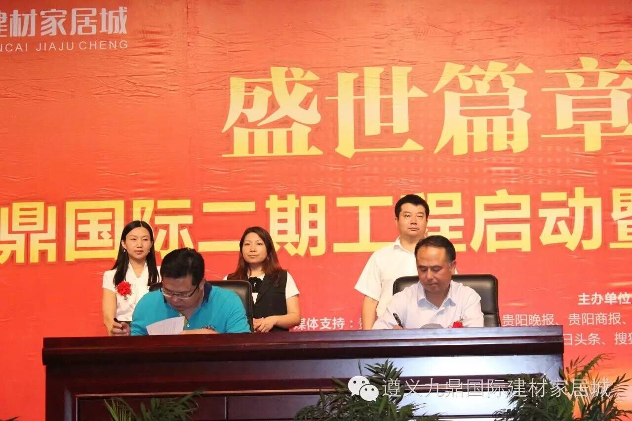 金牌櫥柜、楚楚吊頂、好太太晾衣架、金意陶瓷磚、好萊客衣柜、皇派門業、玉蘭壁紙、德爾地板、吉柏利吊頂、大自然地板、歐雅壁紙窗簾、愛麗克斯凈水器、友邦集成吊頂、恒潔衛浴石峰、顧家家居、慕思寢具、歐麗亞木門、圣世莊園、皮阿諾櫥衣柜、金藝達燈飾、瑞美恒熱熱水器、阿波羅衛浴、富美家居、方太櫥柜、舒適100、馬可波羅瓷磚、蒙拉麗莎瓷磚等近三十家遵義建材家居市場主力商戶與九鼎國際建材家居城現場簽約,九鼎國際建材家居城董事長朱冬林先生為項目方代表,分別與以上品牌商家代表逐一簽約。
