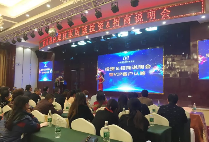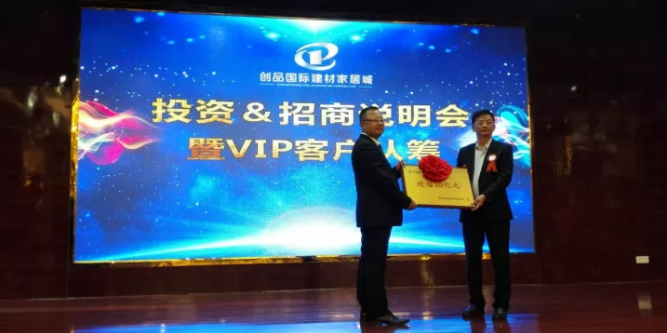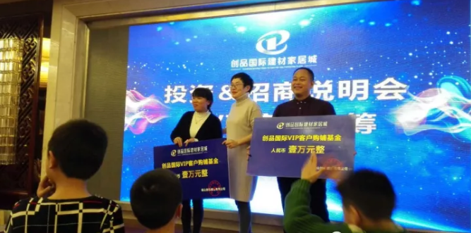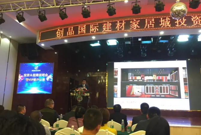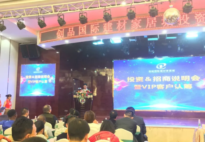 11月23日,創品國際建材家居城“投資&招商說明會暨VIP客戶盛大認籌”活動在衡山神龍盈佳酒店盛大召開。現場500余名來賓歡聚一堂,共同見證了“創品國際建材家居城投資&招商說明會及VIP金卡認籌”這一行業盛典。