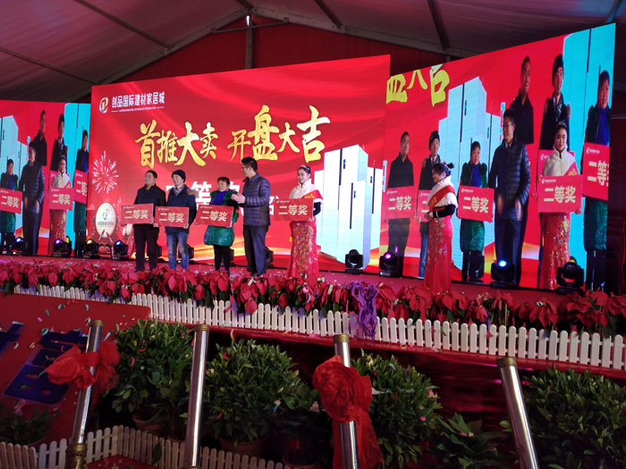開盤儀式隨著創品國際董事長陳春平先生敲響銅鑼聲中宣布創品國際建材家居城正式開盤。