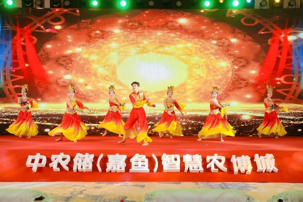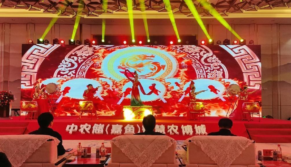 以鼓會友,鼓動未來。中農儲·嘉魚智慧農博城農副產品交易中心項目推介會在磅礴大氣的《龍鼓舞表演》拉開帷幕。