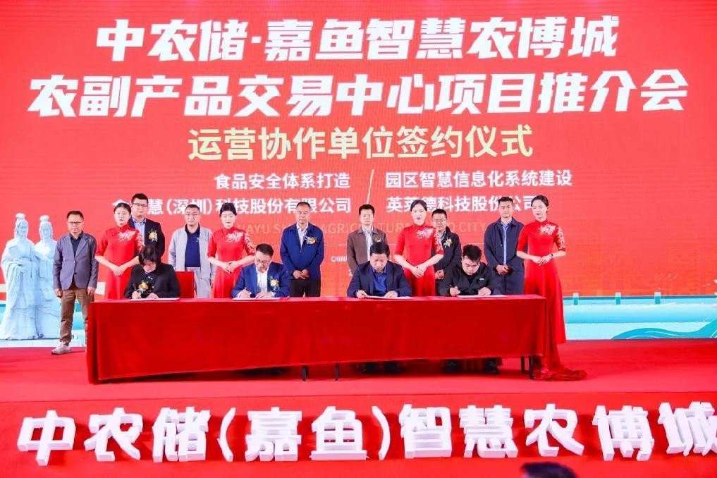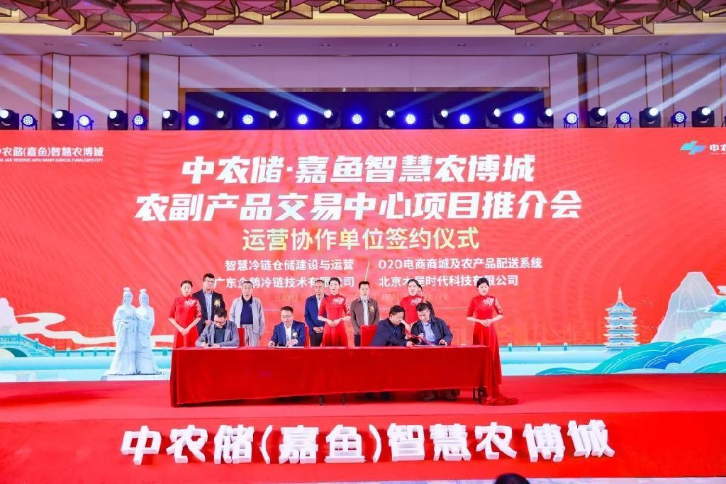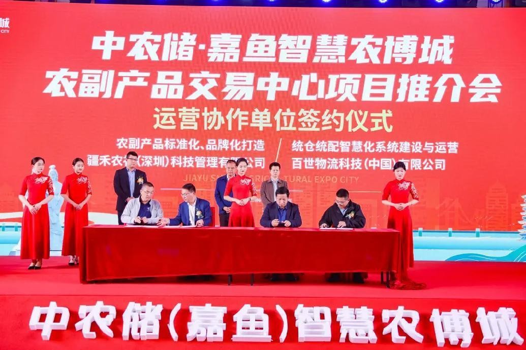 同時,為實現項目科學發展及高效的運營規劃,中農儲.嘉魚智慧農博城聯動上下游各類產業運營協作單位、金融機構、行業協會等。首先,市場運營成功需要保障支持,項目發展商與項目運營公司簽署兩千萬運營保障基金協議,有了這份協議,中農儲·嘉魚智慧農博城市場運營就有了堅實的發展后盾。在本次盛會中,中農儲.嘉魚智慧農博城還與相關運營協作單位進行了集中簽約儀式,此次集中簽約,涵蓋了統倉統配智慧化系統、O2O線上商城與配送系統、智慧冷鏈倉儲建設與運營、產銷對接賦能、產品標準化與品牌化打造、食品安全體系打造等等運營賦能設施,這些運營協作單位的落地既與中農儲.嘉魚智慧農博城打造一站式智慧化的全品類農副產品批發交易中心與鄂東南產地農產品展貿中心的發展定位和“買全國、賣全國”的發展思路高度契合。簽約雙方將緊密合作,將充分完善市場各項運營保障,推進市場向著交易集散中心做大做強,從而真正造富嘉魚,產業興農。
