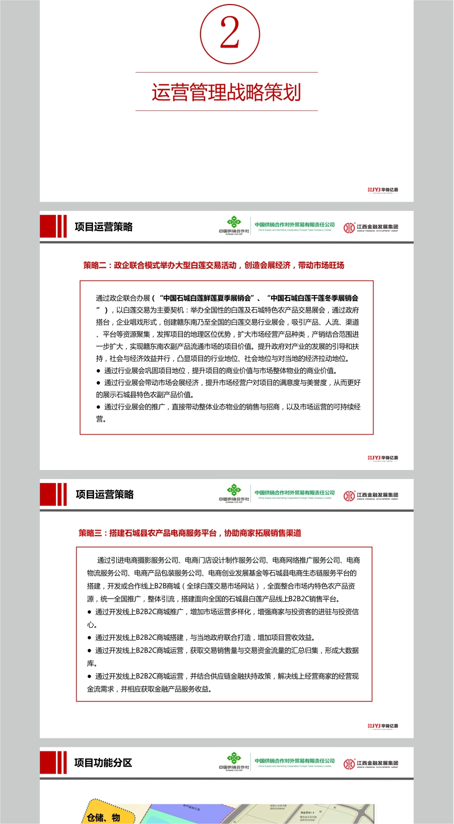 項目規劃占地378畝,總投資12億,分三期開發,項目一期規劃13萬平米,以白蓮交易為核心的特色農產品產地型農批與泛贛東南區域農副產品流通中心的銷地型農批結合的綜合農批流通市場。主要業態包括:產地農批市場、果蔬批發、副食品、酒水批發、特色副食品、旅游產品批發等。打造全球白蓮交易中心、贛東南農副產品交易、石城特色農副產品采購三大功能板塊的綜合型、服務型“三農”市場。