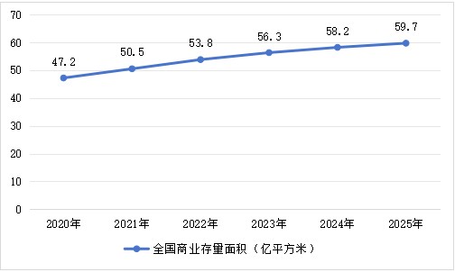 圖1:2020-2025年全國商業存量面積變化曲線