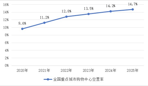 圖2:2020-2025年重點城市購物中心空置率變化曲線